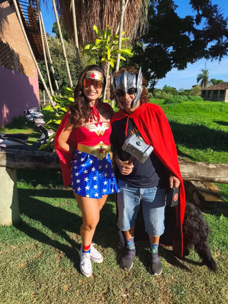 Mulher Maravilha carimbando quem não empurrou na maior subida do passeio