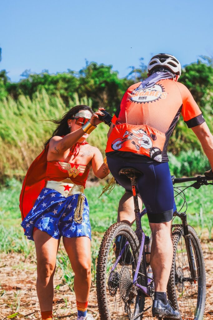 Devido a tempestade que aconteceu na véspera, a equipe técnica mudou um pouco o percurso evitando um o excesso de lama, o que reduziu o percurso para aproximadamente 30km de distância e 400m de altimetria acumulada, passeio considerado de nível “intermediário”. Em uma das maiores subidas do caminho os ciclistas encontraram a mulher maravilha e o Thor, que incentivaram a galera a chegar no topo sem ninguém empurrar a bike.